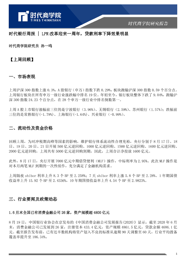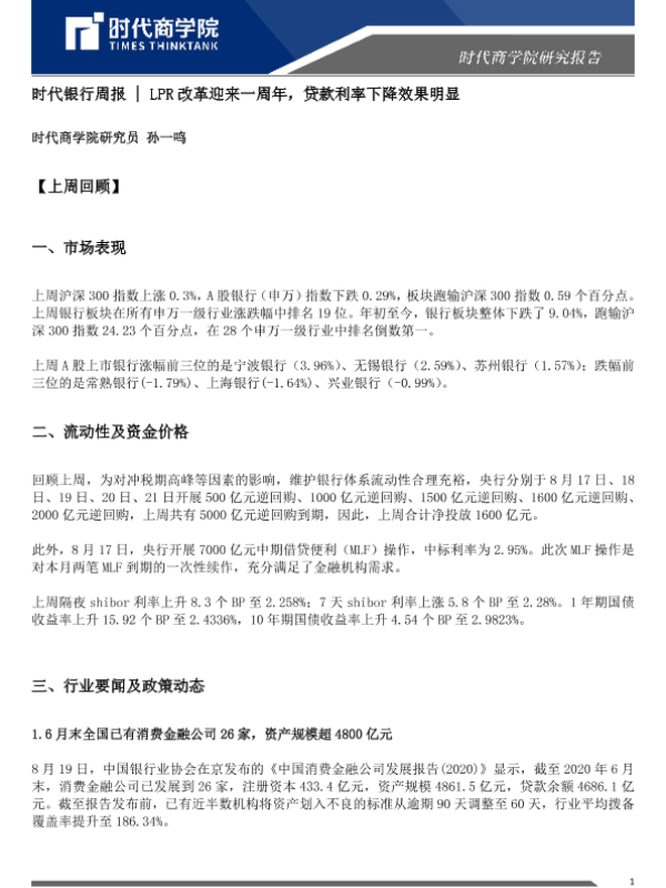 【时代商学院】【20200828】时代银行周报:LPR改革迎来一周年,贷款利率下降效果明显-5页