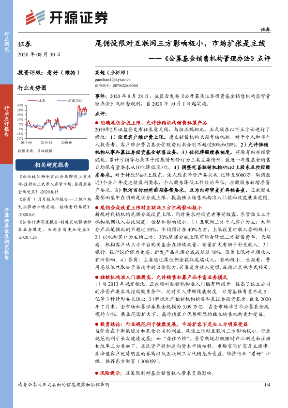 【开源证券】【20200830】《公募基金销售机构管理办法》点评:尾佣设限对互联网三方影响极小,市场扩张是主线-4页