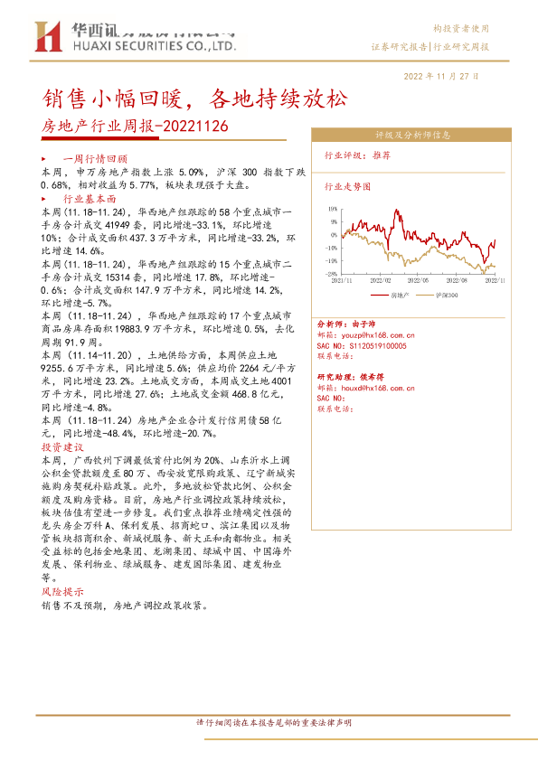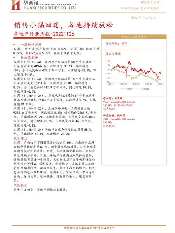 【华西证券】【20221127】房地产行业周报:销售小幅回暖,各地持续放松-23页