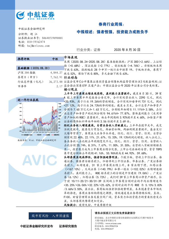 【中航证券】【20200830】券商行业周报:中报综述:强者恒强,投资能力成胜负手-11页