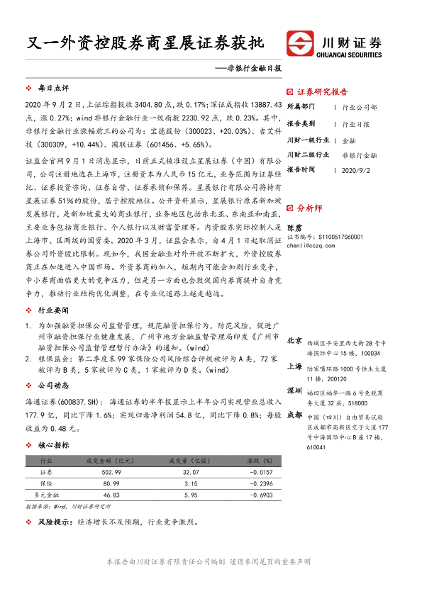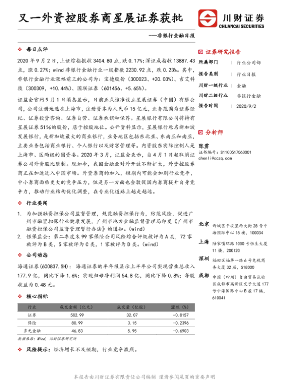 【川财证券】【20200902】非银行金融日报:又一外资控股券商星展证券获批-2页