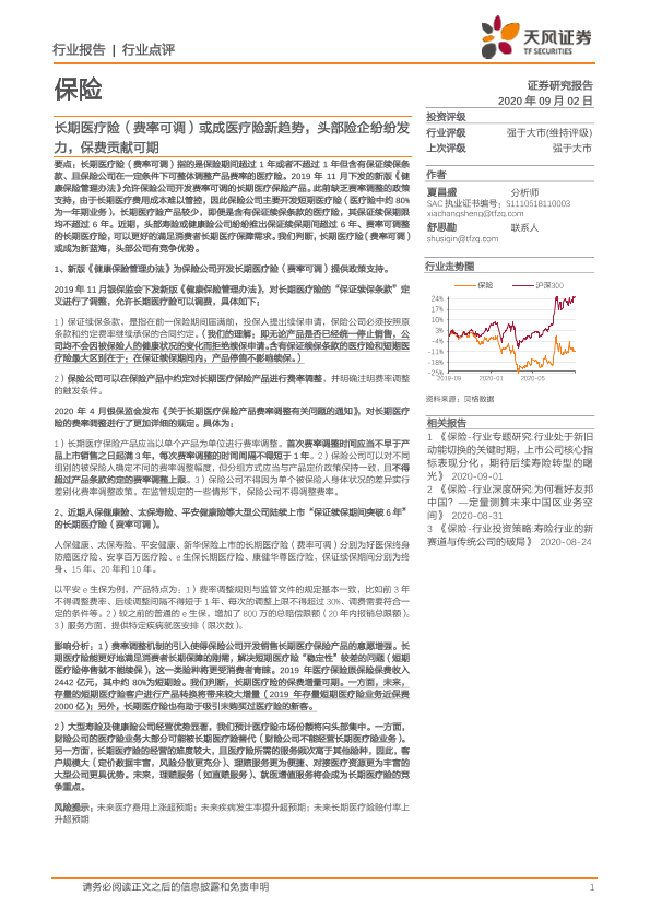 【天风证券】【20200902】长期医疗险(费率可调)或成医疗险新趋势,头部险企纷纷发力,保费贡献可期-2页