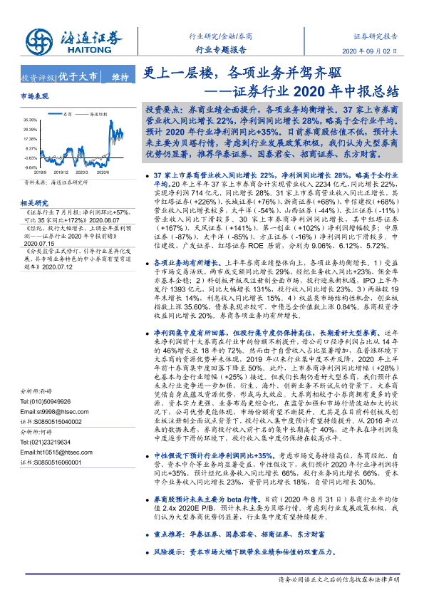 【海通证券】【20200902】证券行业2020年中报总结:更上一层楼,各项业务并驾齐驱-22页