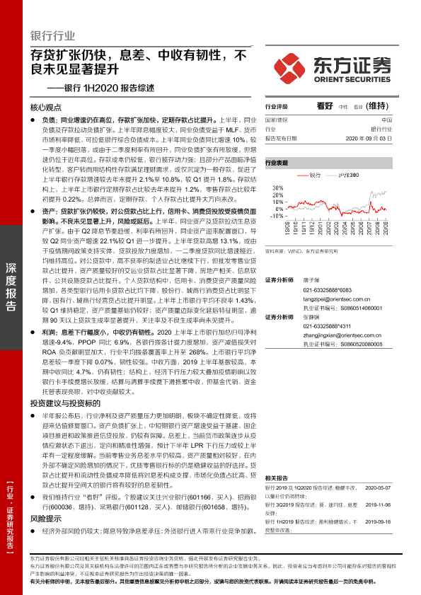 【东方证券】【20200903】银行1H2020报告综述:存贷扩张仍快,息差、中收有韧性,不良未见显著提升-23页