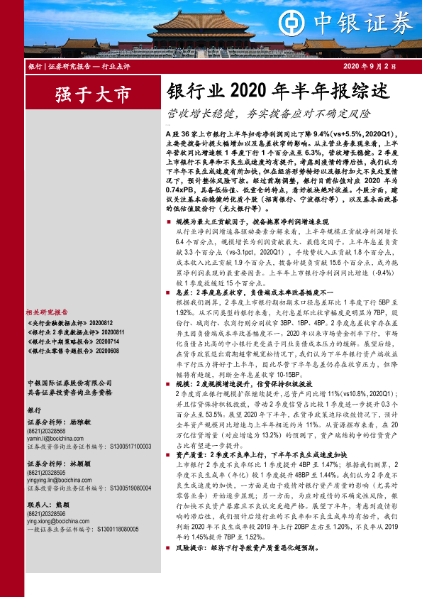 【中银证券】【20200902】银行业2020年半年报综述-20页