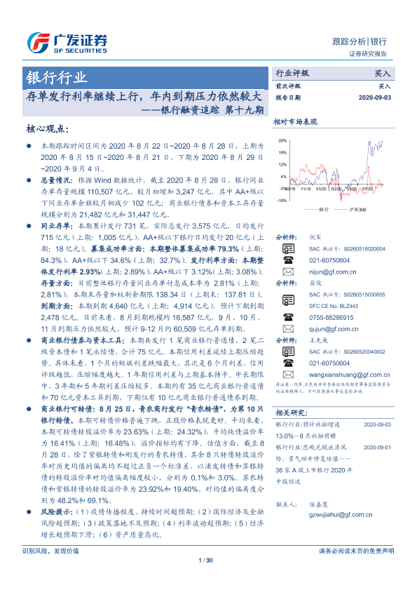 【广发证券】【20200903】银行融资追踪第十九期-存单发行利率继续上行,年内到期压力依然较大-30页