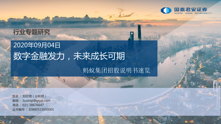 招股说明书 数字金融 移动支付 蚂蚁集团 金融科技