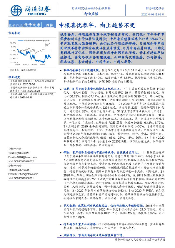 【海通证券】【20200906】综合金融服务行业周报:中报喜忧参半,向上趋势不变-10页