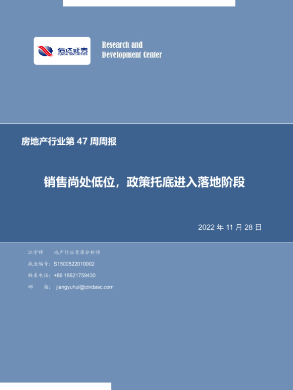 【信达证券】【20221128】房地产行业第47周周报:销售尚处低位,政策托底进入落地阶段-22页