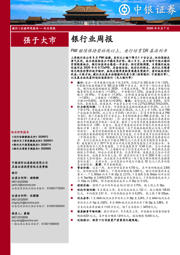 【中银证券】【20200907】PMI继续保持荣枯线以上,央行培育DR基准利率-16页
