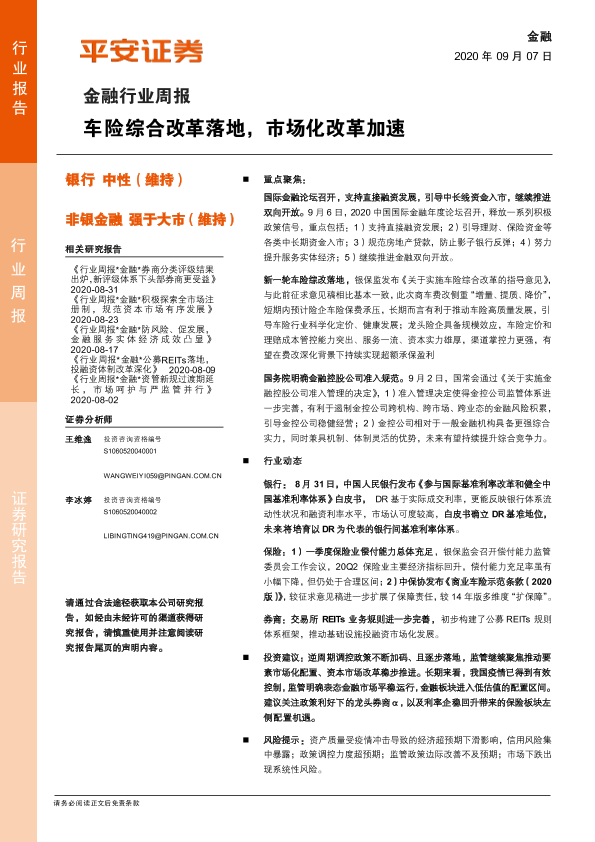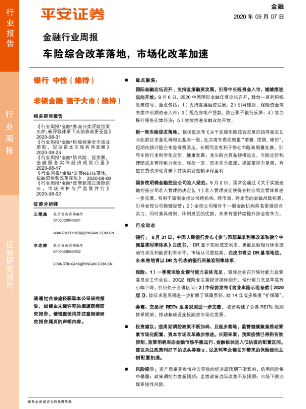 【平安证券】【20200907】金融行业周报:车险综合改革落地,市场化改革加速-10页