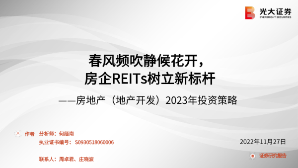 【光大证券】【20221127】房地产(地产开发)行业2023年投资策略:春风频吹静候花开,房企REITs树立新标杆-55页