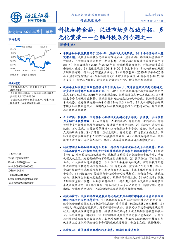 【海通证券】【20200910】金融科技系列专题之一:科技加持金融,促进市场多领域开拓、多元化繁荣-55页