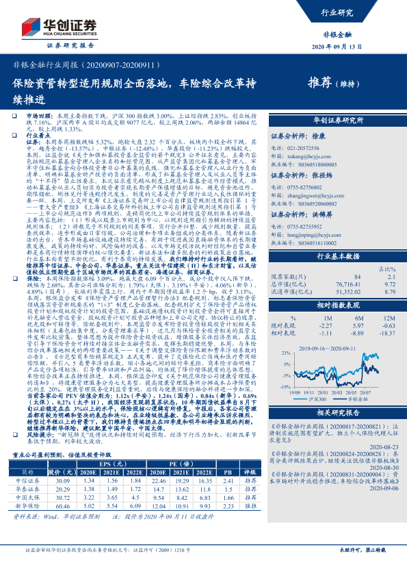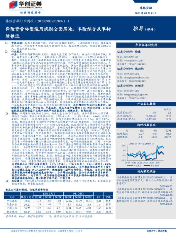 【华创证券】【20200913】非银金融行业周报:保险资管转型适用规则全面落地,车险综合改革持续推进-16页
