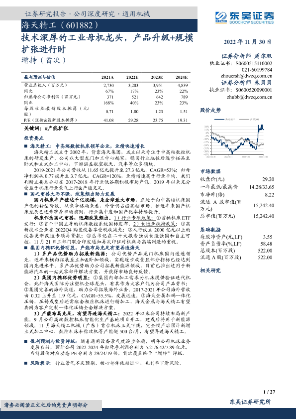 【东吴证券】【20221130】技术深厚的工业母机龙头,产品升级+规模扩张进行时-27页