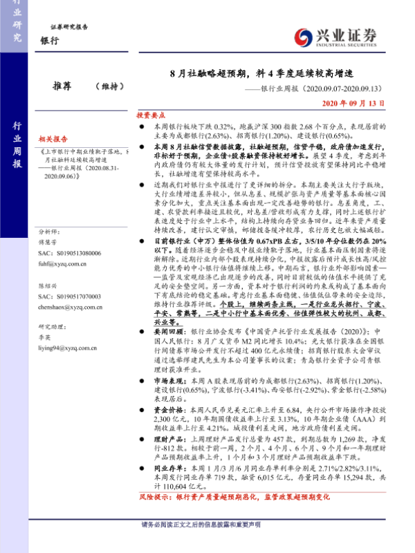 【兴业证券】【20200913】8月社融略超预期,料4季度延续较高增速-12页