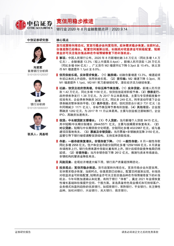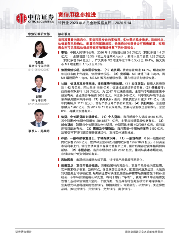 【中信证券】【20200914】银行业2020年8月金融数据点评:宽信用稳步推进-2页