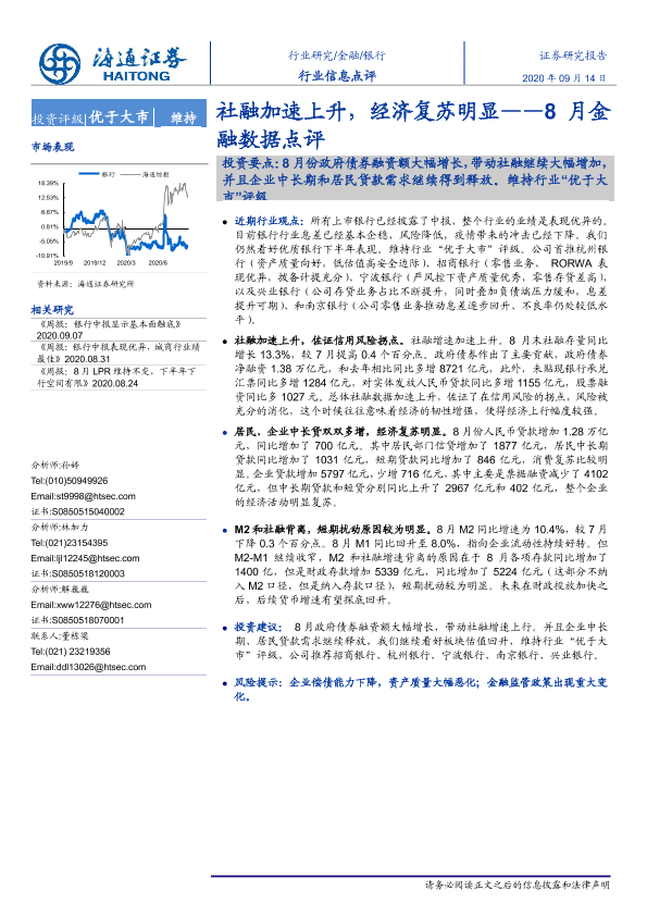 【海通证券】【20200914】8月金融数据点评:社融加速上升,经济复苏明显-3页