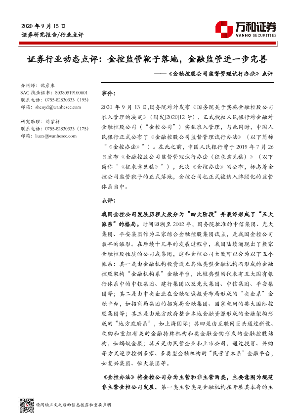 【万和证券】【20200915】证券行业动态点评:金控监管靴子落地,金融监管进一步完善-7页