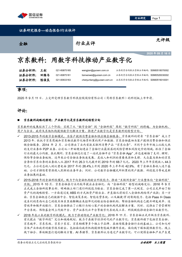 【国信证券】【20200916】京东数科:用数字科技推动产业数字化-6页