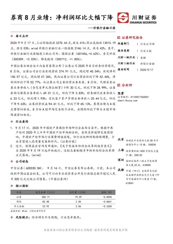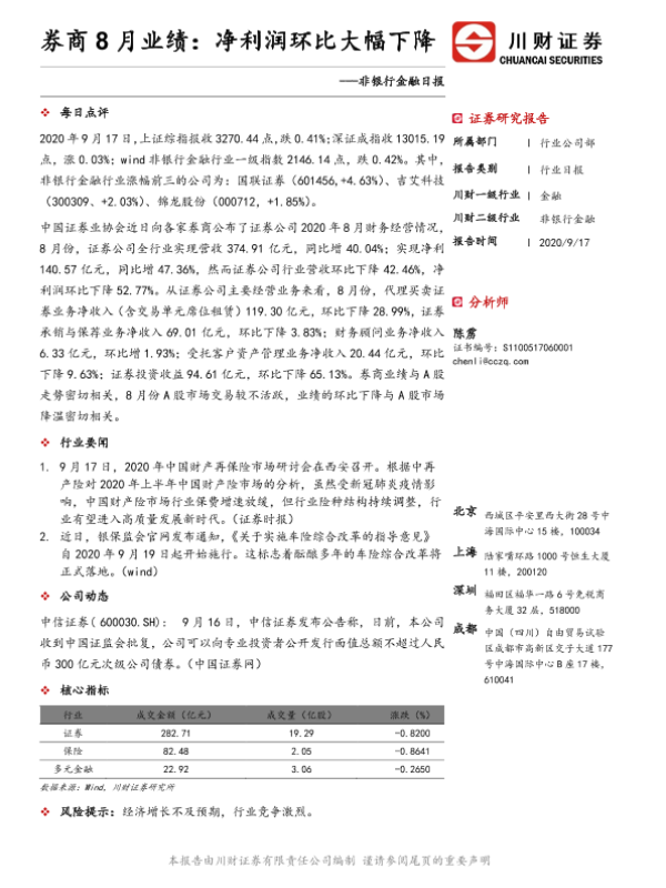 【川财证券】【20200917】券商8月业绩:净利润环比大幅下降-2页