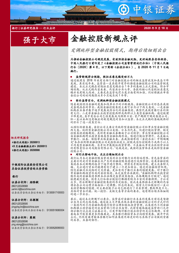 【中银证券】【20200918】金融控股新规点评:定调纯粹型金融控股模式,期待后续细则出台-7页