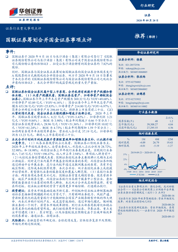 【华创证券】【20200920】证券行业重大事项点评:国联证券筹划合并国金证券事项-4页