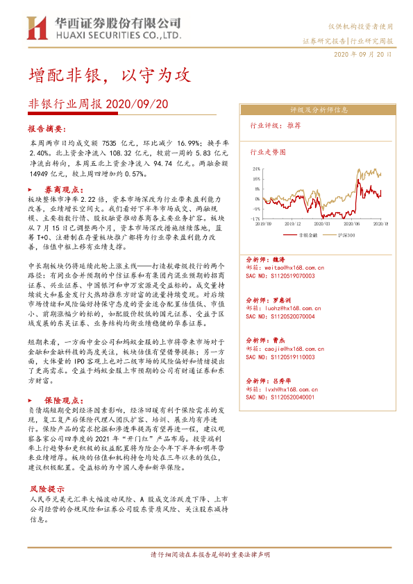 【华西证券】【20200920】非银行业周报:增配非银,以守为攻-14页