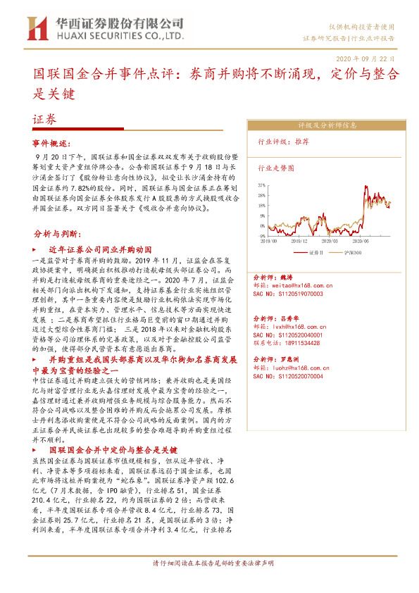 【华西证券】【20200922】国联国金合并事件点评:券商并购将不断涌现,定价与整合是关键-11页