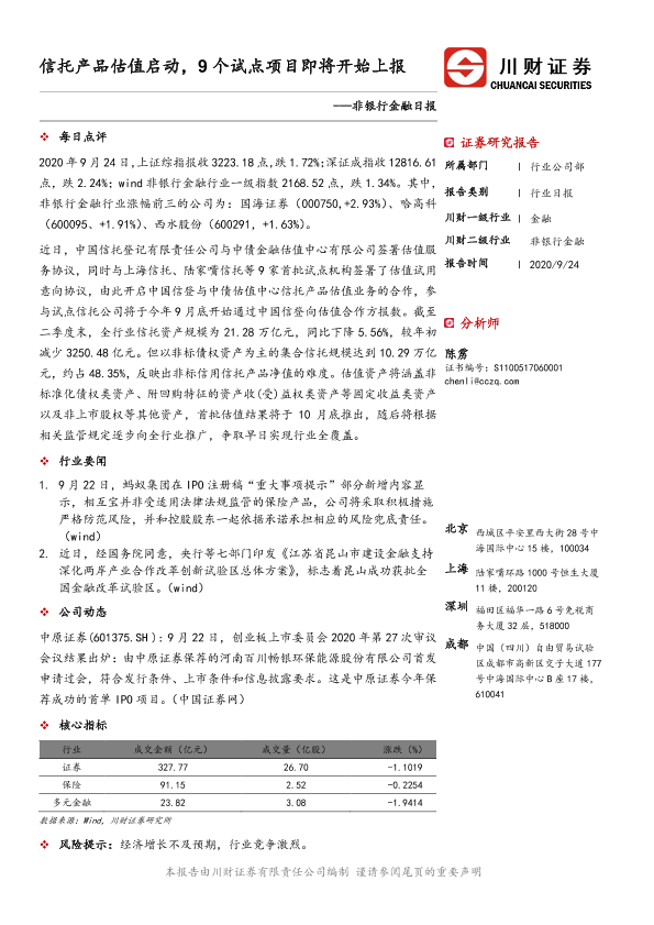 【川财证券】【20200924】非银行金融日报:信托产品估值启动,9个试点项目即将开始上报-2页