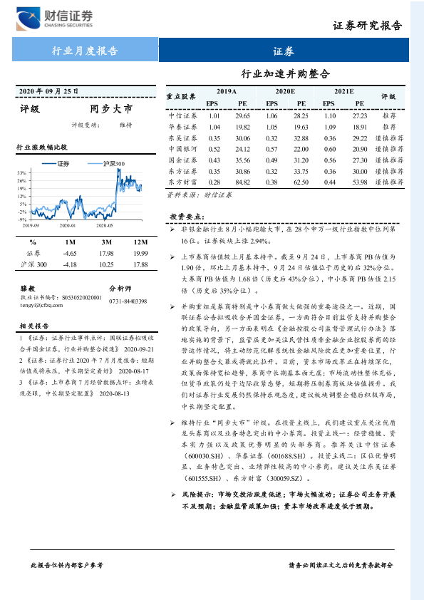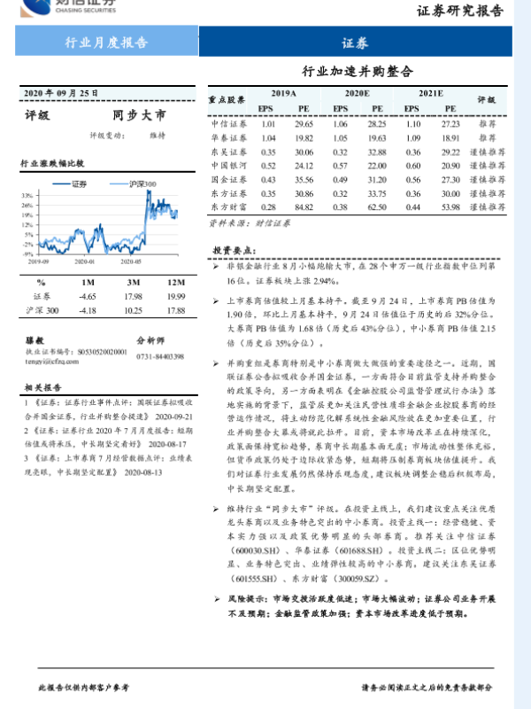 【财信证券】【20200925】证券行业月度报告:行业加速并购整合-11页