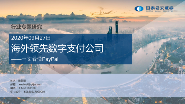 【国泰君安证券】【20200927】一文看懂PayPal-海外领先数字支付公司-22页