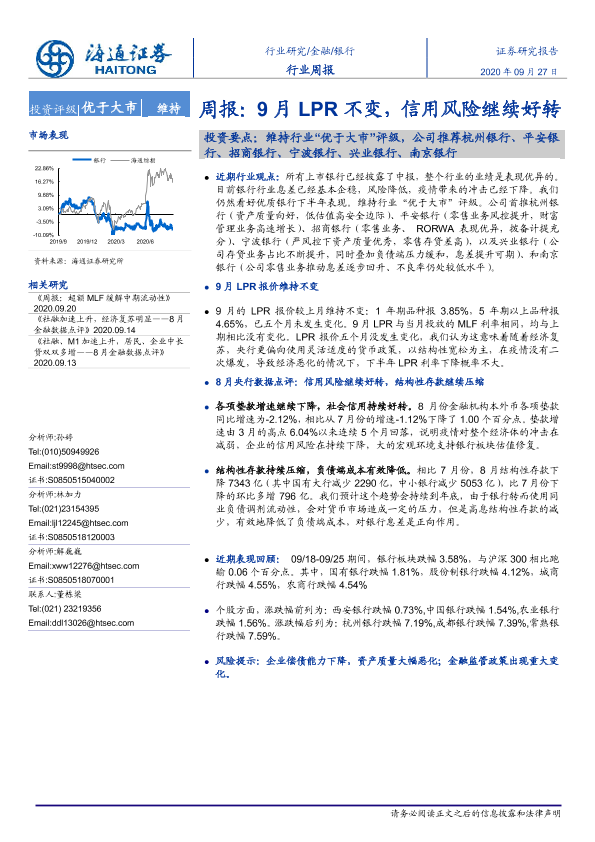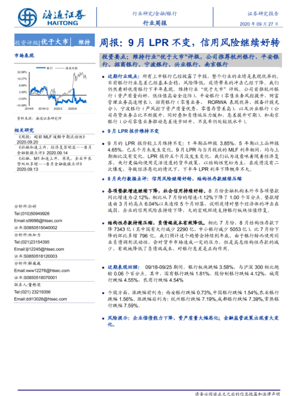 【海通证券】【20200927】9月LPR不变,信用风险继续好转-8页