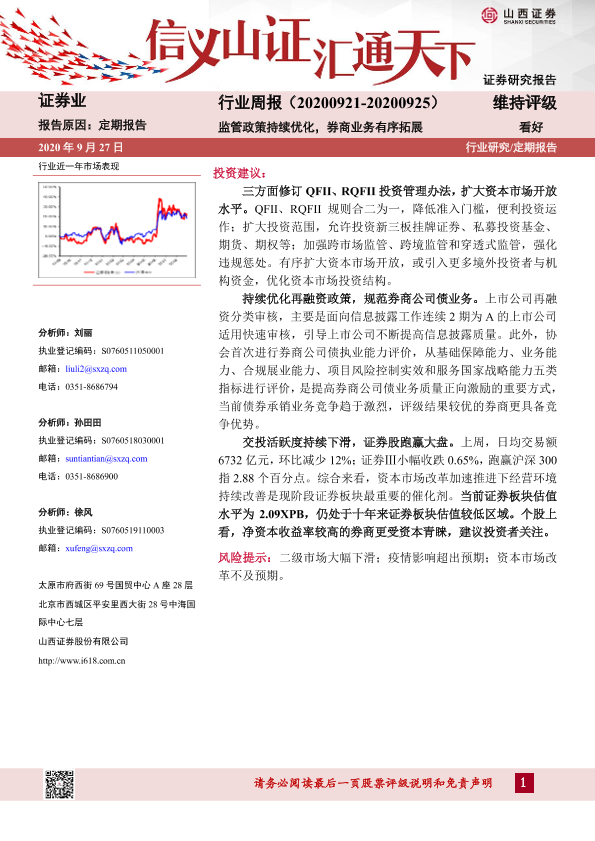【山西证券】【20200927】证券行业周报:监管政策持续优化,券商业务有序拓展-13页