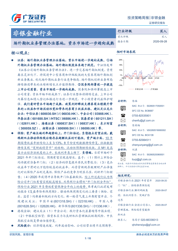【广发证券】【20200928】非银金融行业投资策略周报:场外期权业务管理办法落地,资本市场进一步趋向成熟-10页