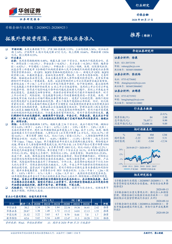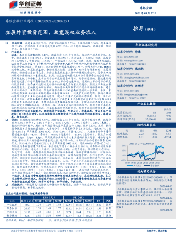 【华创证券】【20200928】非银金融行业周报:拓展外资投资范围,放宽期权业务准入-17页