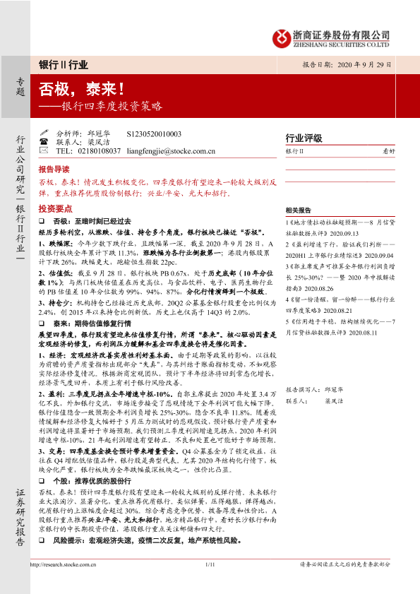 【浙商证券】【20200929】银行四季度投资策略:否极,泰来!-11页