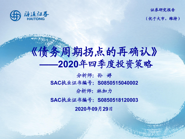 【海通证券】【20200929】2020年四季度投资策略:《债务周期拐点的再确认》-38页