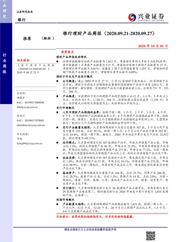 【兴业证券】【20201001】银行理财产品周报-19页