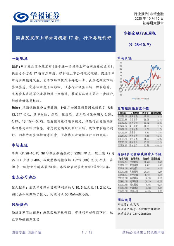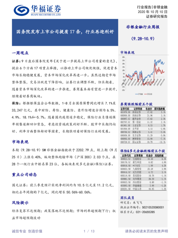 【华福证券】【20201010】非银金融行业周报:国务院发布上市公司提质17条,行业再迎利好-13页