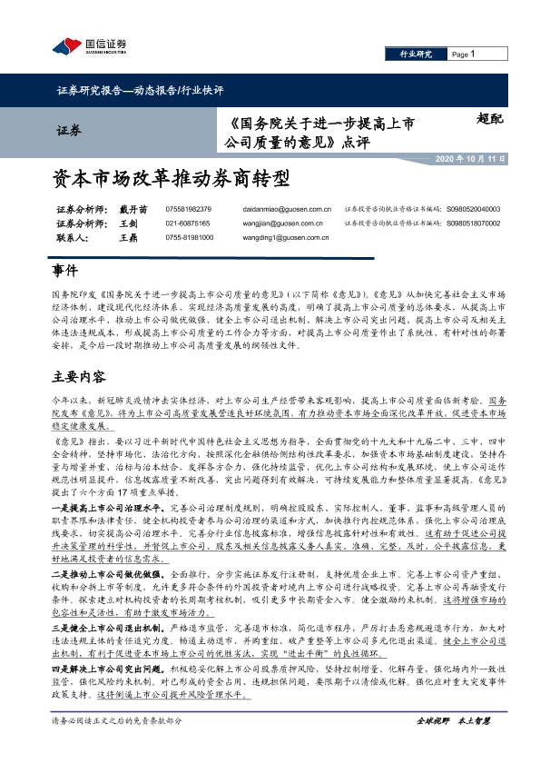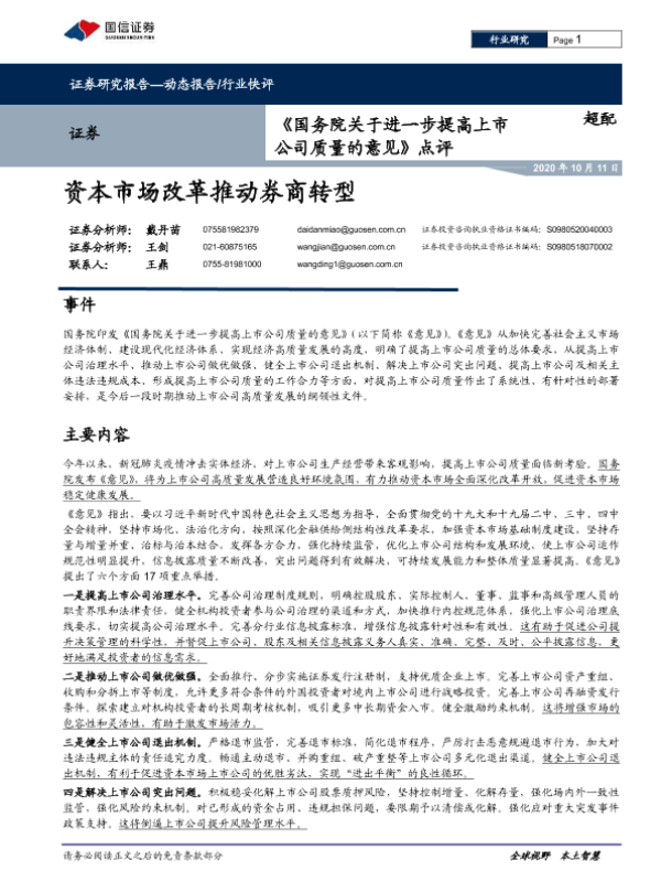 【国信证券】【20201011】《国务院关于进一步提高上市公司质量的意见》点评:资本市场改革推动券商转型-6页