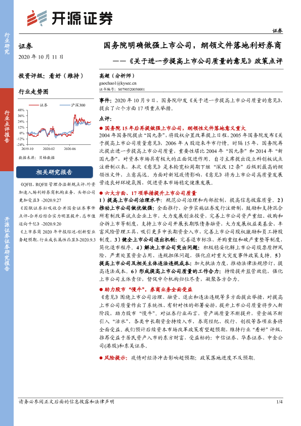 【开源证券】【20201011】关于进一步提高上市公司质量的意见政策点评-4页