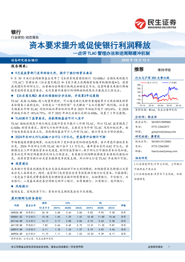【民生证券】【20201012】银行:点评TLAC管理办法和逆周期缓冲机制:资本要求提升或促使银行利润释放-12页