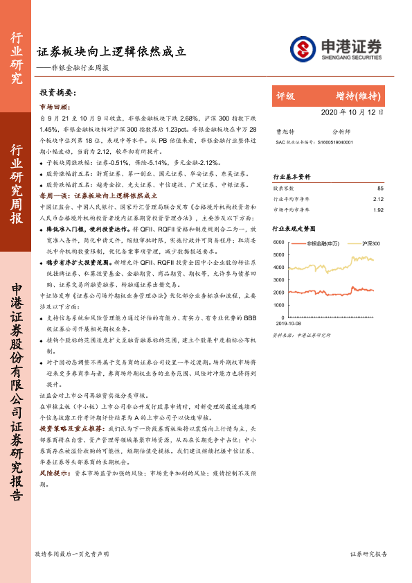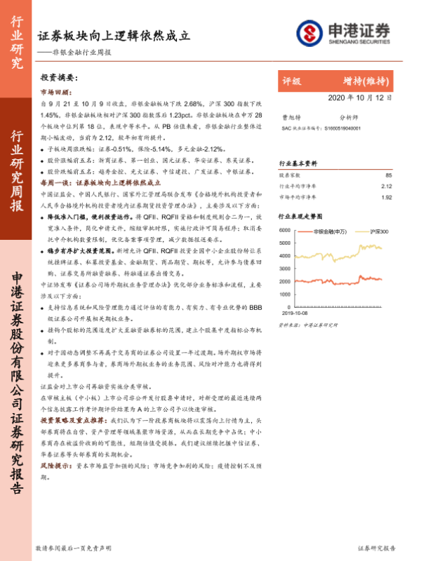 【申港证券】【20201012】非银金融行业周报:证券板块向上逻辑依然成立-14页