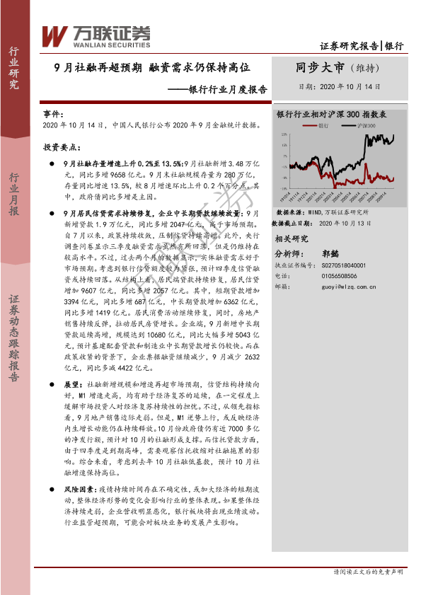【万联证券】【20201014】9月社融再超预期 融资需求仍保持高位-5页