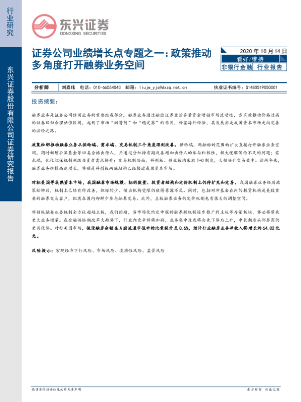 【东兴证券】【20201014】证券公司未来业绩增长点探讨之一:政策推动多角度打开融券业务空间-17页