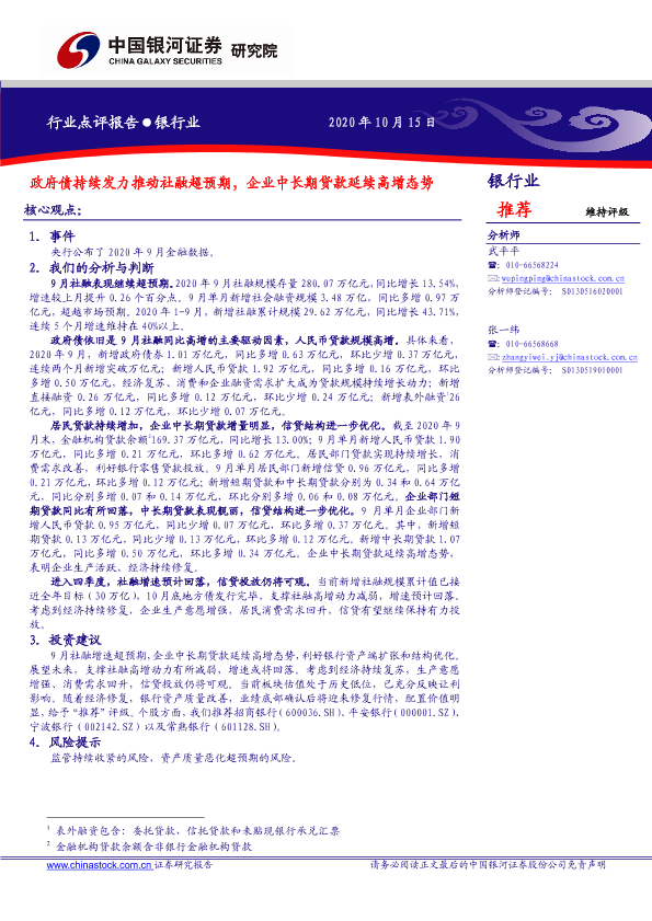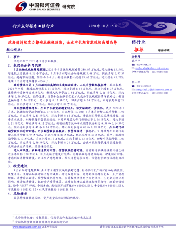 【银河证券】【20201015】政府债持续发力推动社融超预期,企业中长期贷款延续高增态势-5页