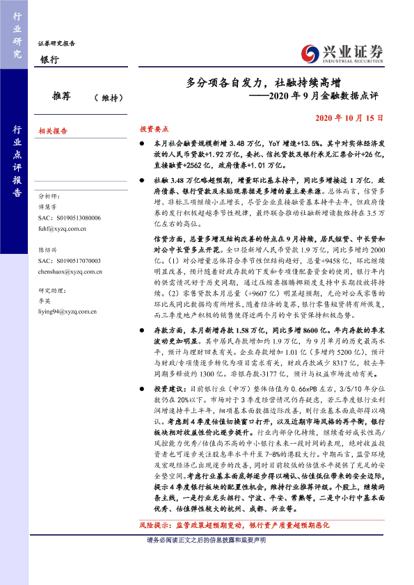 【兴业证券】【20201015】2020年9月金融数据点评:多分项各自发力,社融持续高增-7页