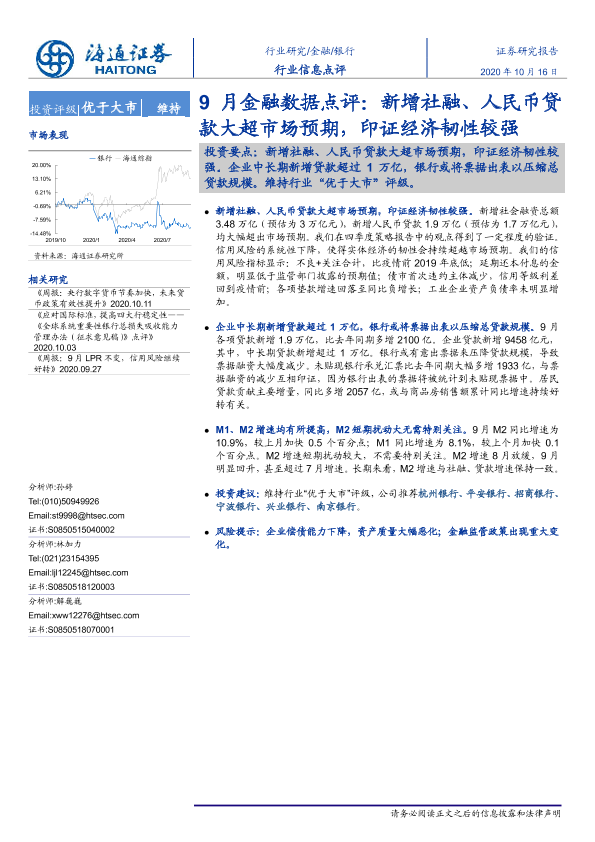 【海通证券】【20201016】9月金融数据点评:新增社融、人民币贷款大超市场预期,印证经济韧性较强-3页