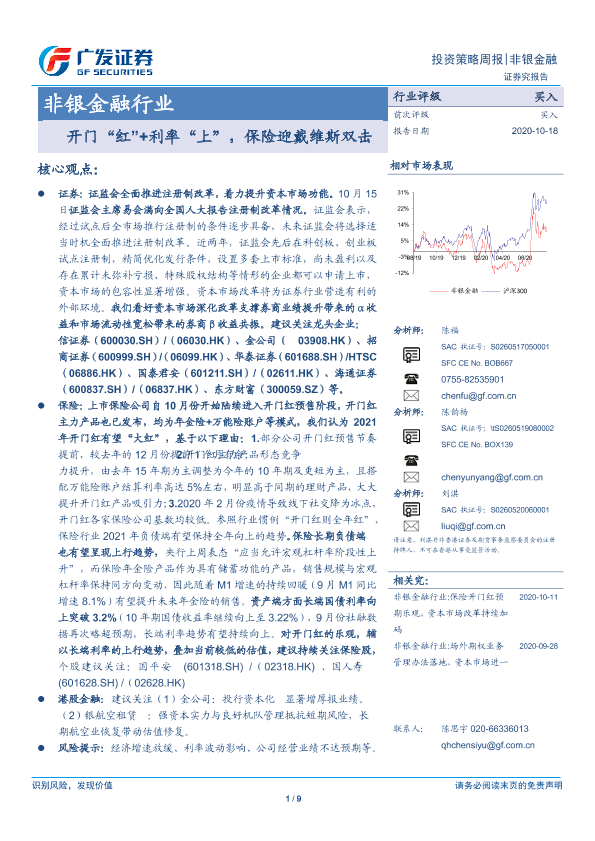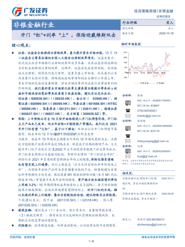【广发证券】【20201018】非银金融行业投资策略周报:开门“红”+利率“上”,保险迎戴维斯双击-9页